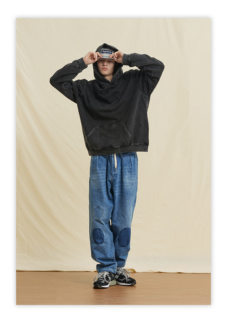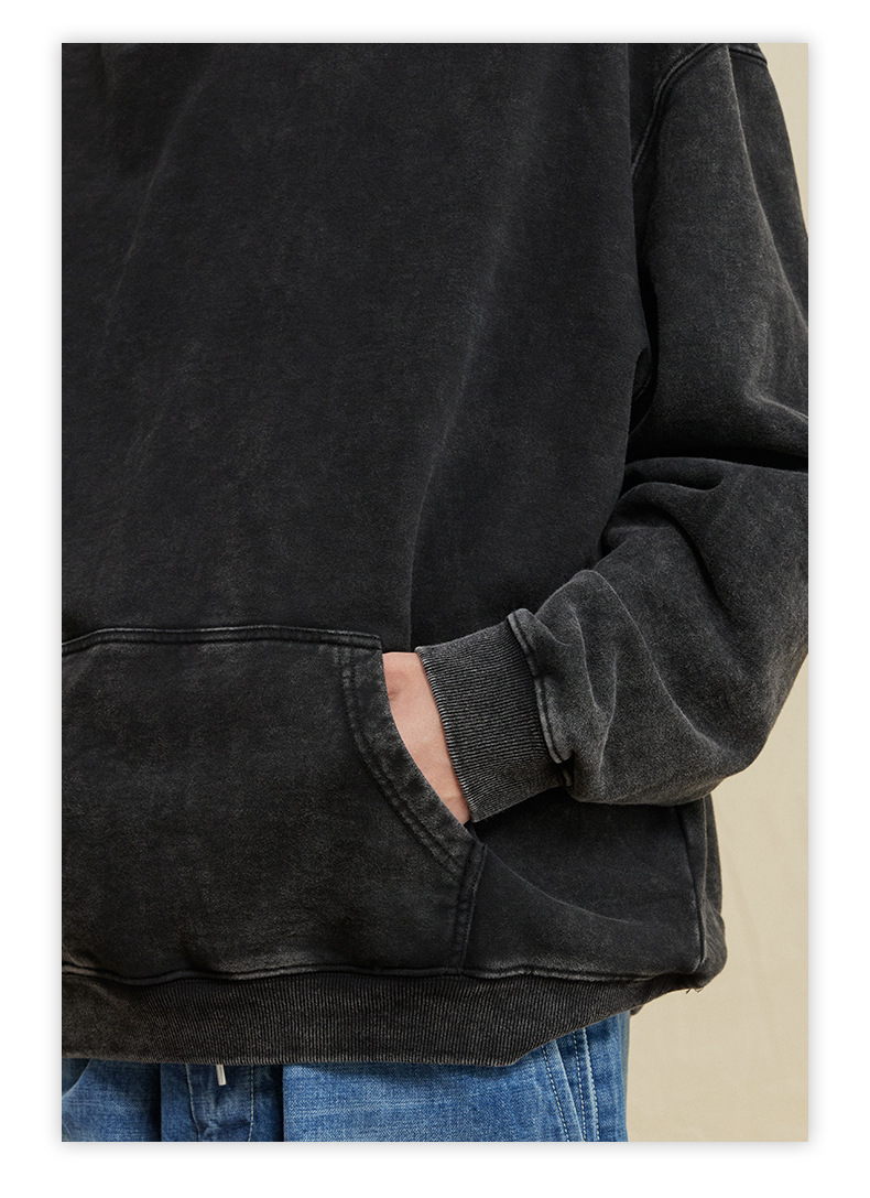 古着風のデザインが特徴的な綿製パーカーです。