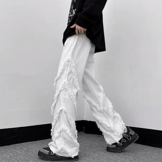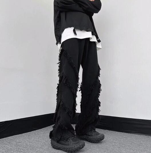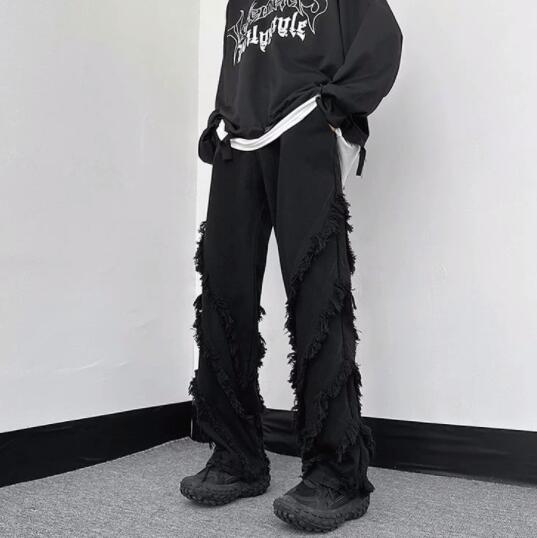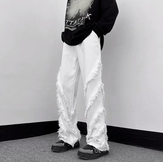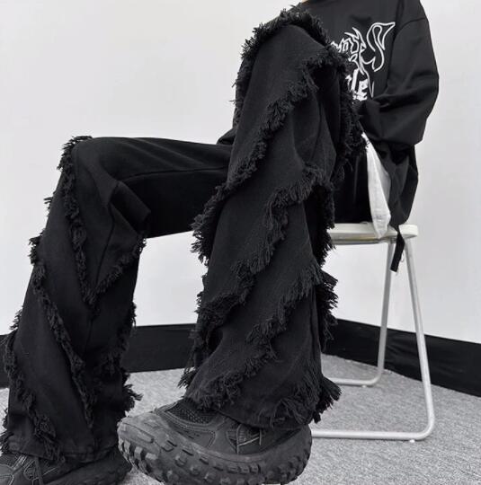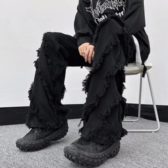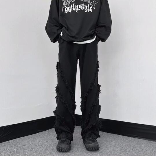 両サイドに施されたフリンジ加工が個性的なデニムパンツです。